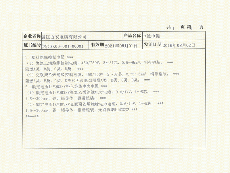 浙江力安电缆有限公司